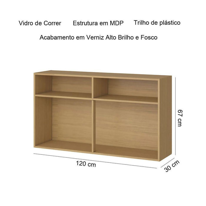 Produzido em MDP de 12mm e 15mm de espessura, proporcionando resistência e durabilidade. Amplo espaço interno, garantindo maior firmeza ao móvel. Trilho de plástico dando maior resistência. Acabamento em verniz alto brilho e fosco garantindo a conservação do móvel, além de manter o brilho constante oferece ao móvel beleza, resistência e durabilidade prolongando a vida útil do produto.
