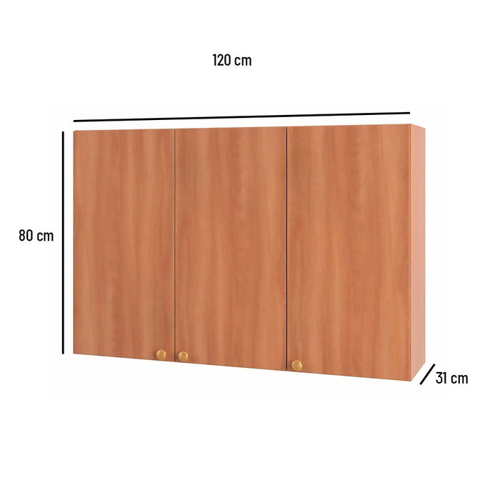 Se você procura um armário aéreo com muito espaço e qualidade, este modelo da Telasul é ideal para você. Ele possui três portas com dobradiças com sistema de amortecimento slow motion, que garantem mais suavidade nos movimentos de abertura e fechamento. As portas também contam com puxadores em modelo ponto, com acabamento dourado, que dão um toque de charme ao móvel. O armário é produzido em mdp com acabamento em finish foil na cor freijó, que é resistente e fácil de limpar. Ele tem 120 cm de largura, 31 cm de profundidade e 80 cm de altura, e suporta até 5 kg em cada prateleira interna.