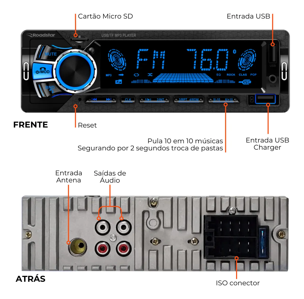 Descrição AUTO RADIO ROADSTAR RS2751BR BT 12V