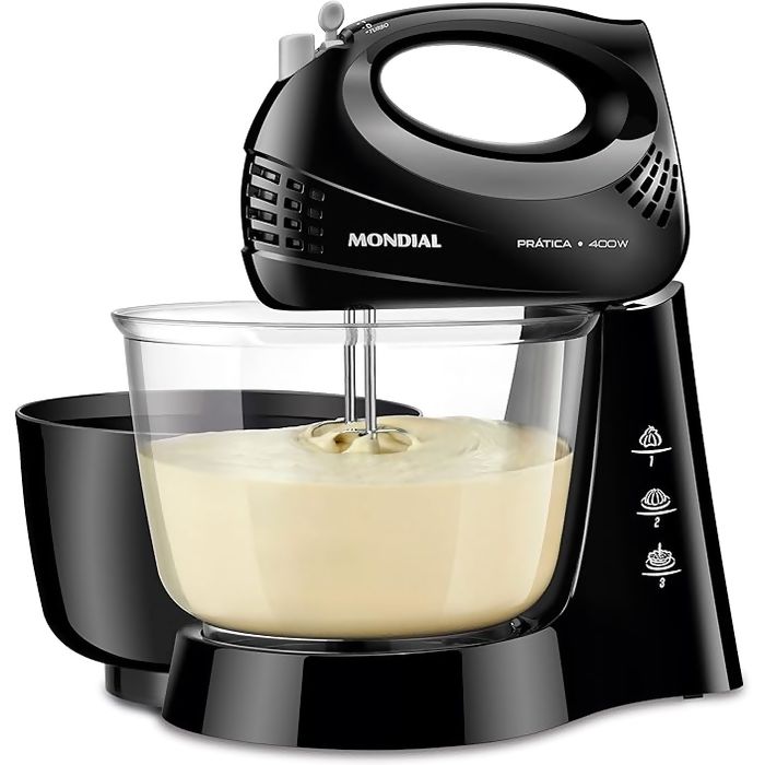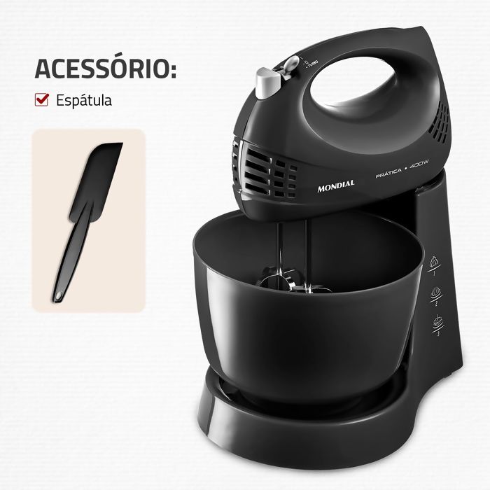 Prepare receitas em dobro com a Batedeira Prática B-45-B Mondial. Com 400W de potência, 3 velocidades para controlar o ponto das receit ...veja mais