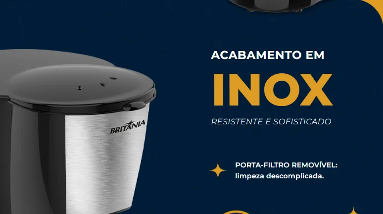 DescriçãoCafeteira Britânia Bcf 19 Jarra de Vidro 18 Cafezinho 220V A Cafeteira Britânia BCF 19 é a escolha ideal para quem valoriza um café fresquinho e saboroso. Com capacidade para preparar até 18 cafezinhos de uma só vez, esta cafeteira é perfeita para quem gosta de compartilhar bons momentos com amigos e familiares. A Cafeteira Britânia BCF 19 é uma excelente opção para quem busca praticidade e qualidade na hora de preparar café. Com capacidade para 18 cafezinhos e uma jarra de vidro resistente, ela combina eficiência e durabilidade, tornando o seu café diário mais especial. Seja para uso em casa ou no escritório, essa cafeteira oferece a conveniência que você precisa, sempre com um café quentinho e delicioso. Seu design moderno, com uma jarra de vidro resistente, garante a durabilidade e praticidade no dia a dia. O sistema corta-pingos permite retirar a jarra a qualquer momento, sem fazer sujeira, e o filtro permanente facilita a limpeza e reutilização, sem a necessidade de comprar filtros de papel. Além disso, a base aquecedora mantém o café quente por mais tempo, garantindo que você possa desfrutar de uma xícara sempre na temperatura ideal. Essa cafeteira também é muito fácil de usar, com um botão liga/desliga iluminado, que indica quando o aparelho está em funcionamento. Compacta e eficiente, a Britânia BCF 19 é perfeita para qualquer cozinha, ocupando pouco espaço e proporcionando um café delicioso em minutos. Ficha Técnica: Marca: Britânia Modelo: BCF 19 Capacidade: 18 cafezinhos Voltagem: 220V Material da Jarra: Vidro resistente Sistema Corta-pingos: Sim Filtro Permanente: Sim Base Aquecedora: Sim Botão Liga/Desliga: Sim, com iluminação Consumo de Energia: 0,8 kWh Potência: 550W Peso: 1,1 kg Dimensões (AxLxP): 240 x 220 x 150 mm Cor: Preta Itens inclusos: -1 Cafeteira Britânia Bcf 19; -1 Jarra de vidro; -1 Porta filtros; -1 Manual do usuário. |