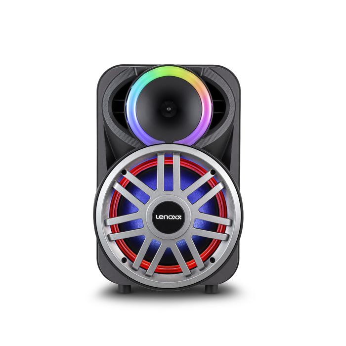 A performance e a vibração são garantidas com os 300W de potência e um alto-falante de 8 polegadas que além do tamanho ideal também é decorado com leds rítmicos coloridos que acompanham a batida da música.