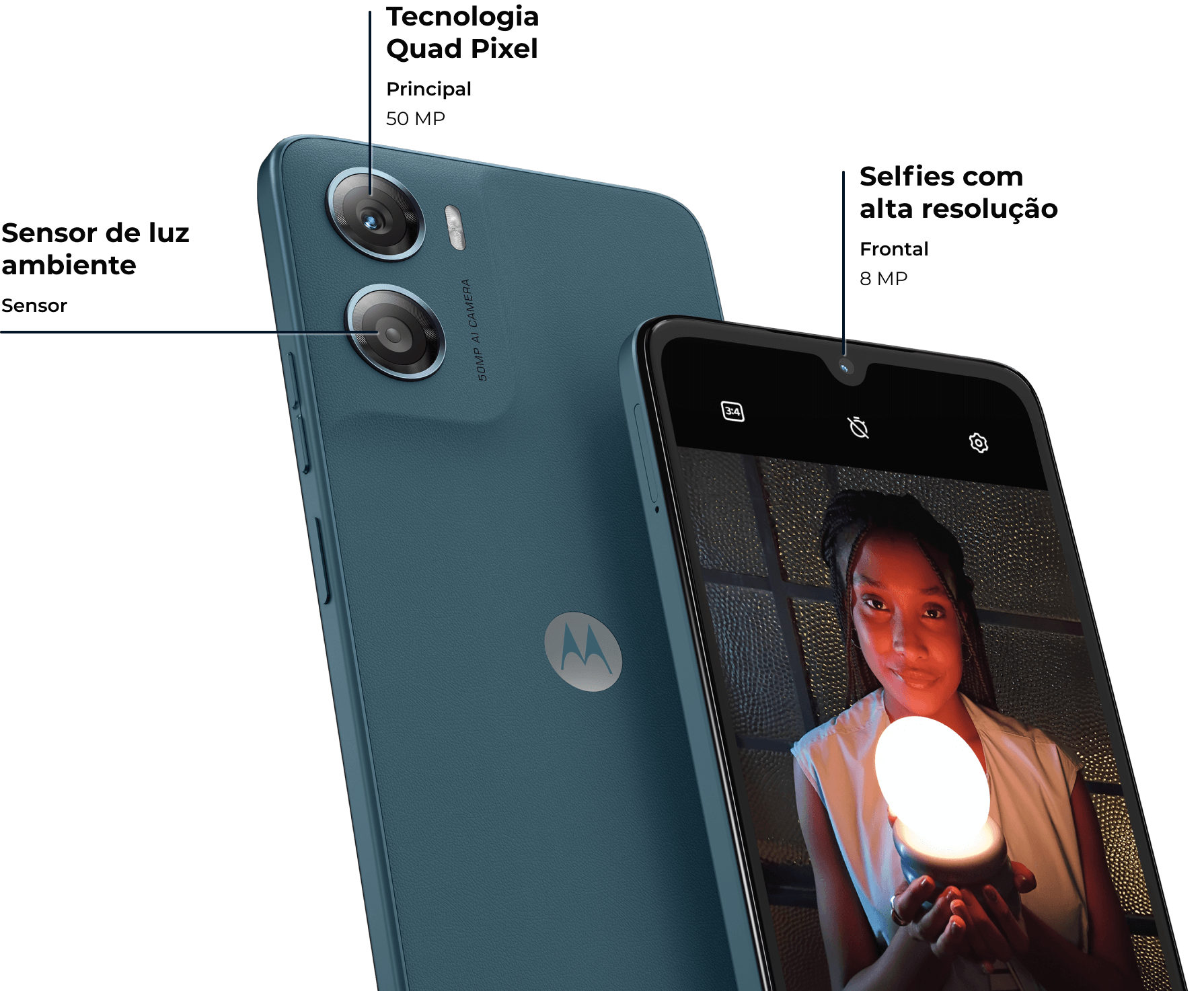 | Caracerísticas | O único da categoria com o recurso Circule para Pesquisar. A bateria dura até 49 horas A maior tela da categoria¹O moto g06 tem a maior tela¹ da categoria, com 6,9?, resolução HD+ e imagem superbrilhante. O smartphone também tem o sistema de áudio mais avançado da sua faixa de preço². Os alto-falantes estéreo com tecnologia Dolby Atmos® entregam o dobro de potência nos graves³. Tamanho6,9?Taxa de atualização120 Hz4ProteçãoGorilla® Glass 3 ![]() Tela que responde ao toque mesmo molhadaCom a tecnologia Smart Water Touch do celular moto g06, a tela responde ao toque e aos gestos mesmo quando está molhada. Ideal para trocar a música da festa na piscina ou chamar uma corrida de aplicativo na chuva, sem perrengue. ![]() ![]() Resistência avançadaFeito com material superior, o moto g06 é feito para durar. Com a certificação IP645, você não precisa se preocupar com respingos e derramamentos. E o dia a dia fica mais tranquilo sabendo que a tela está protegida com o vidro Corning® Gorilla® Glass 3. Circule para pesquisarCircule, destaque ou toque em uma imagem ou texto para obter resultados da Pesquisa do Google. Descubra na hora o que você quiser sem precisar trocar de app. ![]() Até 49 horas de duração da bateria6Conte com a bateria de 5200 mAh para ouvir música por mais tempo, passar horas e horas em videochamadas com os amigos e maratonar suas séries preferidas até o último episódio6. Ela é feita para durar em todos os sentidos, mantendo 80% da capacidade mesmo após anos de uso e 1000 ciclos de recarga7. E com o recurso cuidados com a bateria, você aproveita essa energia ao máximo. ![]() 73 horasde música ![]() 19 horasde vídeo ![]() 20 horasde internet ![]() 21 horasde redes sociais ![]() 22 horasde GPS ![]() 24 horasde chamadas ![]() ![]() Fotos lindas e vibrantesTire fotos lindas e vibrantes em qualquer luz usando a câmera avançada com sensor de 50 MP