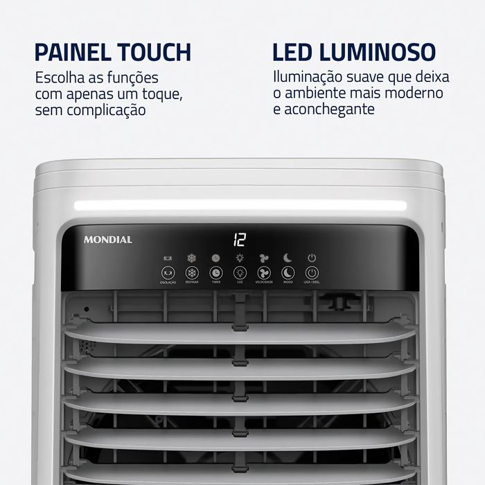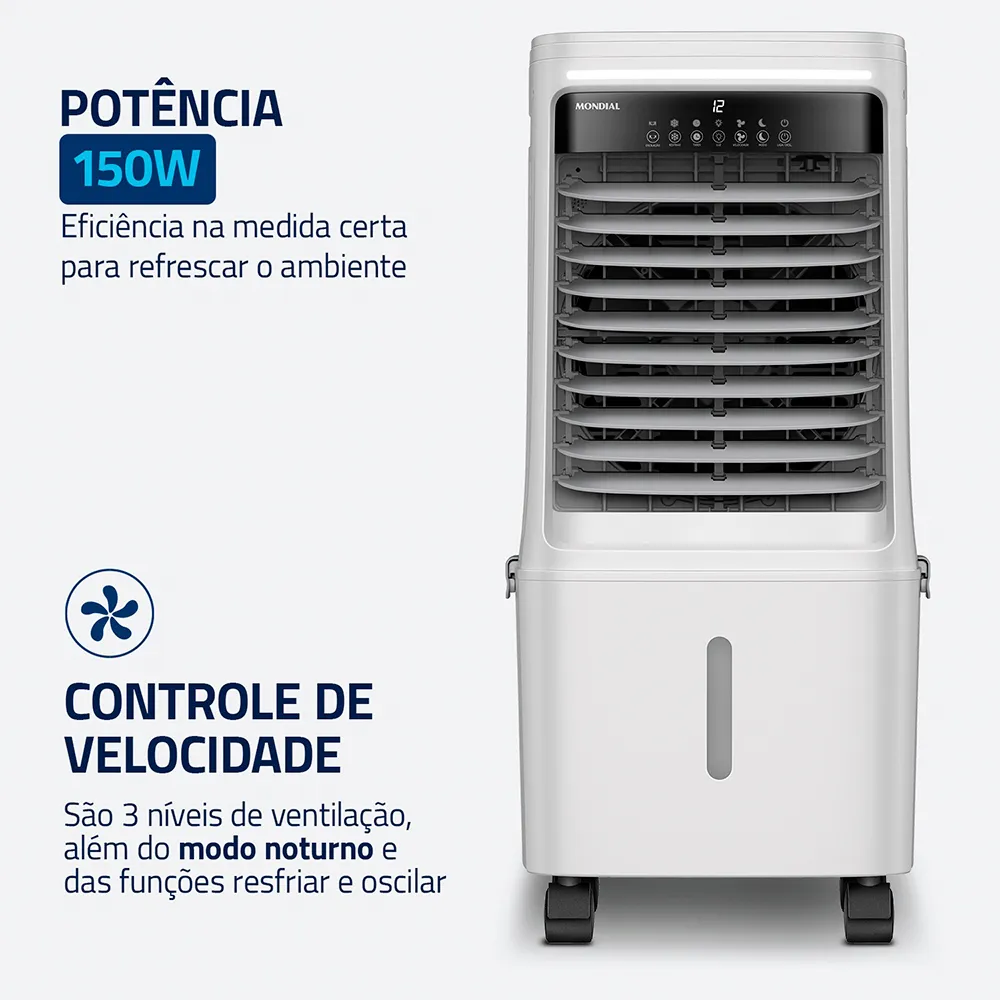 5 em 1: O climatizador Mondial filtra, ventila, circula, umidifica e climatiza o ar, melhorando a qualidade do ar no seu dia a dia.