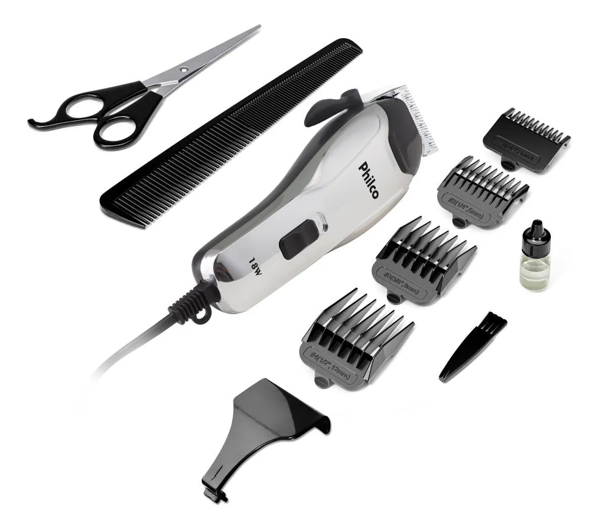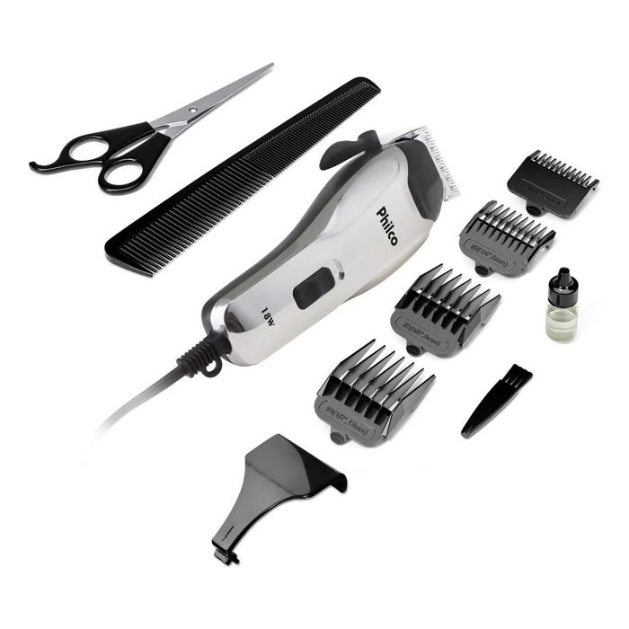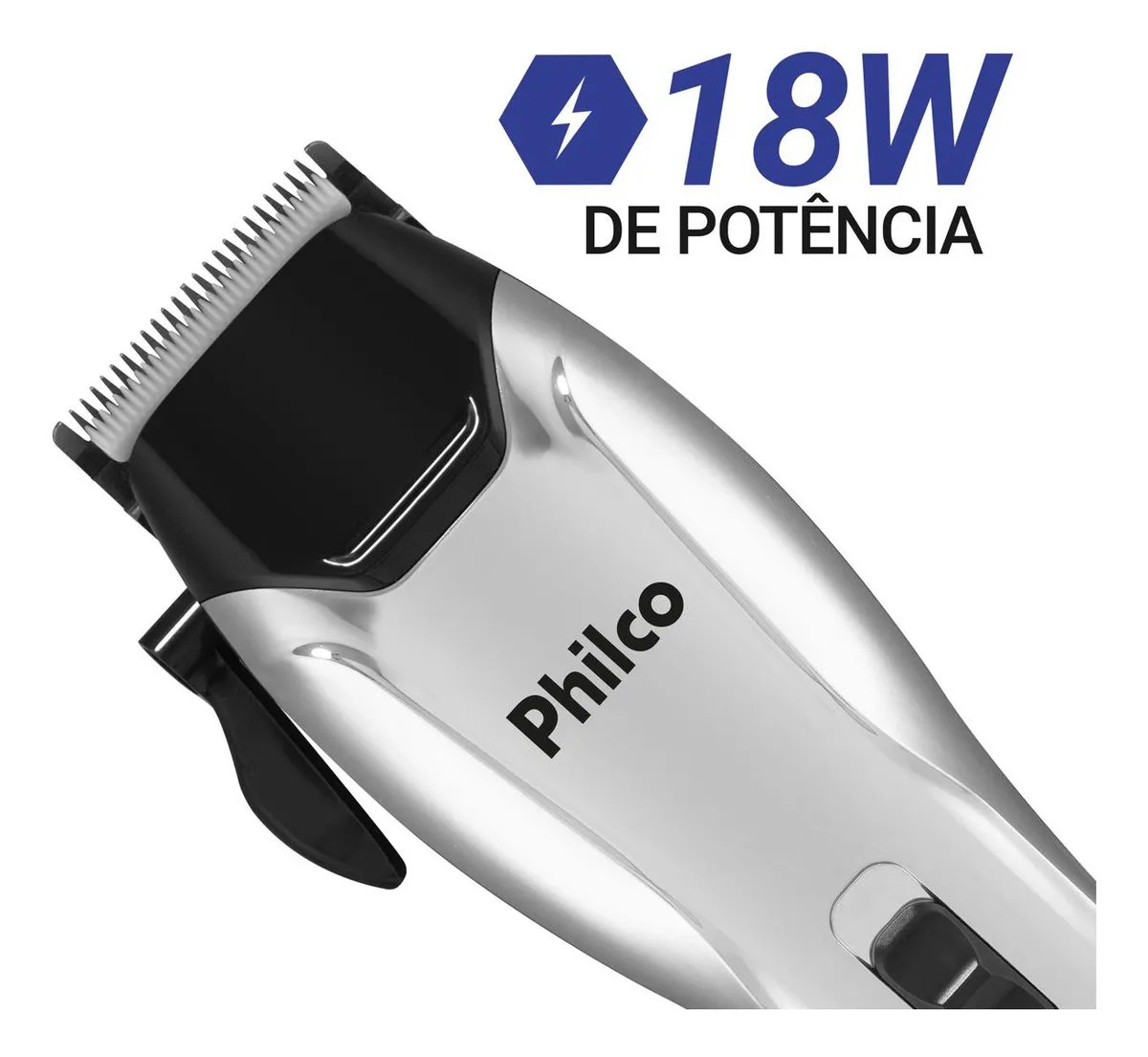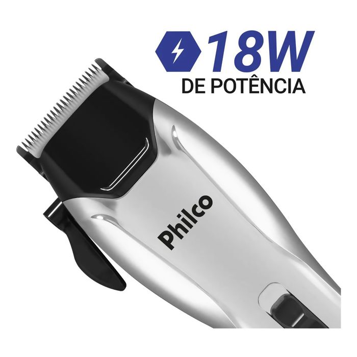 Descrição CORTADOR DE CABELO PHILCO 9 ACESSÓRIOS 4 PENTES PCR04 COR CROMADO COM PRETO