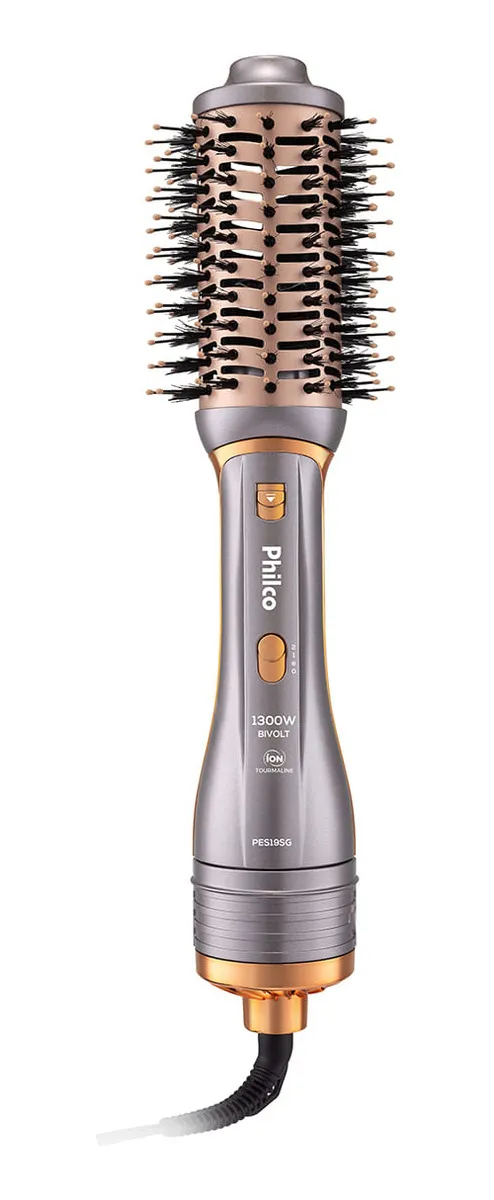 Transforme sua rotina de cuidados com o cabelo com a Escova Secadora Philco PES19SG. Este aparelho permite secar, alisar, modelar e dar volume aos seus fios com facilidade e rapidez. Com 1300W de potência e bivolt, é ideal para qualquer situação. Acompanha 3 acessórios: um bocal de escova redonda, bocal de escova oval e bocal de secador de cabelos, proporcionando versatilidade para criar diversos estilos. Com 2 temperaturas e 2 velocidades, adapta-se a todos os tipos de cabelo, enquanto a tecnologia com Íon Tourmaline mantém a umidade natural dos fios, garantindo maciez e reduzindo o frizz. Características adicionais incluem: - Jato de ar frio; - Funcionalidade de secador; - Grade traseira removível; - Cordão giratório; - Cordão elétrico com 1,80m; - Composição em metal e plástico. A Escova Secadora Philco PES19SG é versátil e pode ser usada em cabelos úmidos, molhados ou secos, tornando-se um acessório indispensável para o seu dia a dia.