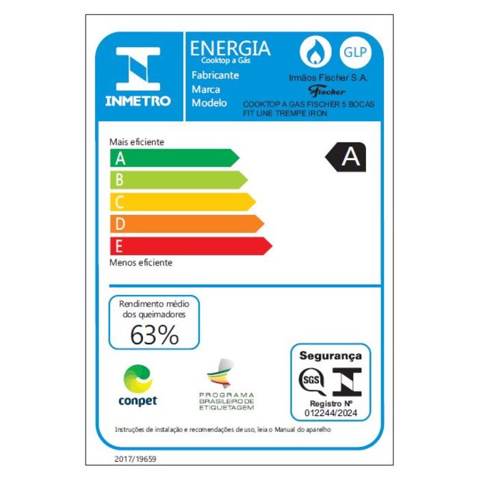 Descrição FOGAO FISCHER COOKTOP 36325-102672 FIT LINE 5B VDO BIVOLT PRETO