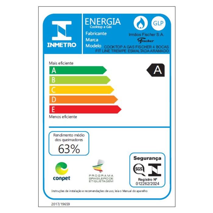 Descrição FOGAO FISCHER COOKTOP 36350-102675 FIT LINE 4B VDO BIVOLT PRETO