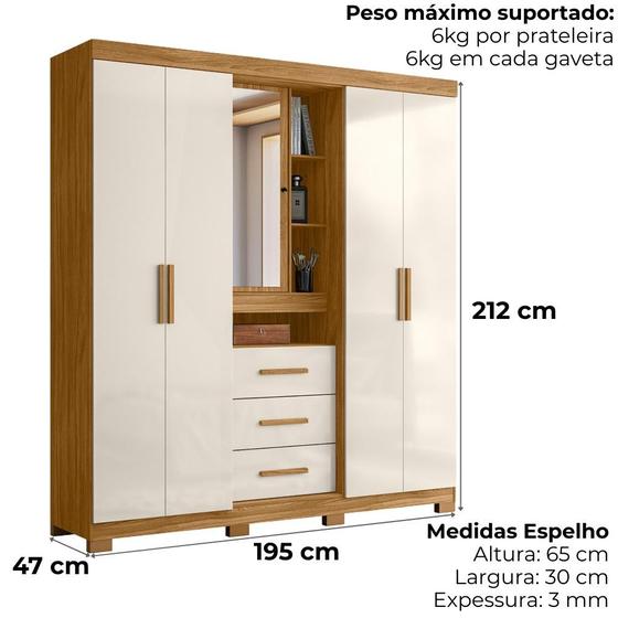 Guarda Roupa Casal 5P Espelho 195 cm Eldorado Moval