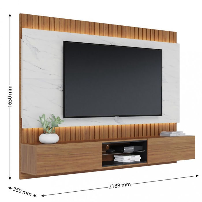 Inspirado no design contemporâneo, o home Suspenso Búzios é ideal para quem quer renovar com requinte e sofisticação a decoração da sala. Desenvolvido para TVs de até 75 polegadas, transforma qualquer sala de TV em um verdadeiro cinema em casa. Super charmoso, possui um painel todo ripado com iluminação de led que proporciona uma ambientação intimista e aconchegante.