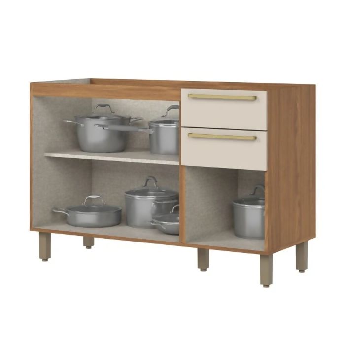 BALCÃO SEM TAMPO 3 PORTAS 2 GAVETAS 120CM REQUINTE HENN