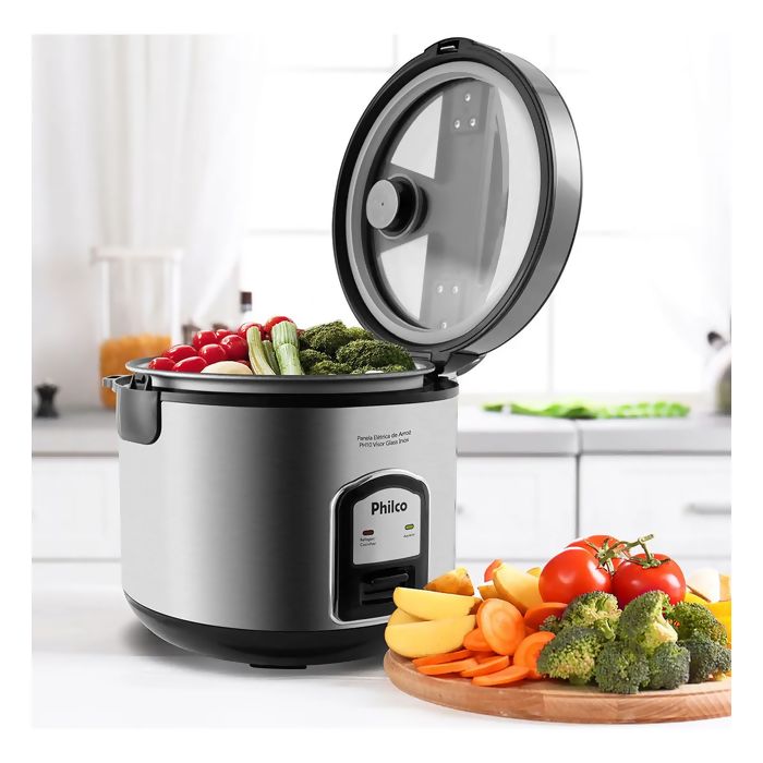 Informações sobre o produto Descrição PANELA DE ARROZ ELETRICA PHILCO PH10P VISOR GLASS 10 XÍCCaracterísticas do produtoCaracterísticas principais