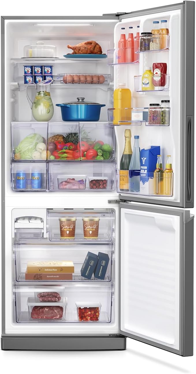A Geladeira/Refrigerador Panasonic BB64 oferece tecnologia de ponta e eficiência energética com seu sistema Inverter, garantindo mais de 48% de economia de energia. Este modelo Frost Free possui capacidade total de 460L, sendo 309L no refrigerador e 151L no freezer. Com duas portas no estilo Inverse, a geladeira proporciona mais conveniência ao colocar o freezer na parte inferior. Feita em aço escovado, esse refrigerador conta com recursos avançados como o SmartSense, que monitora o uso diário por meio de inteligência artificial, além de painel EasyTouch em LED para fácil controle de temperatura. Seu sistema Antibacteria Ag mantém o ambiente interno livre de bactérias. Outros destaques incluem prateleiras retráteis, Drink Cooler, Kitchen Timer, turbo freezer e gavetão hortifruti, oferecendo organização e praticidade. A geladeira possui classificação A+++ em eficiência energética, sendo ideal para quem busca economia e desempenho em um só produto.