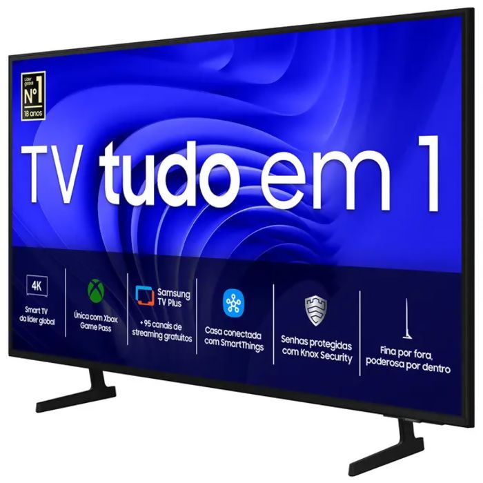TV gigante com vídeo game embutido, inteligência artificial, comando de voz e muito mais para você mergulhar nos mais diversos conteúdos! A Smart TV Samsung UN75DU7700, possui super tela de 75" LED com processador Crystal UHD e resolução 4K para você se impressionar! Confira mais detalhes: